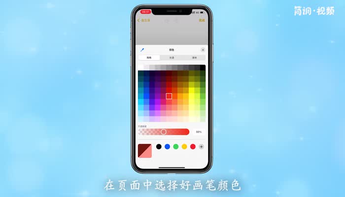 3.点击右边的彩色圆点,选择页面中画笔的颜色;