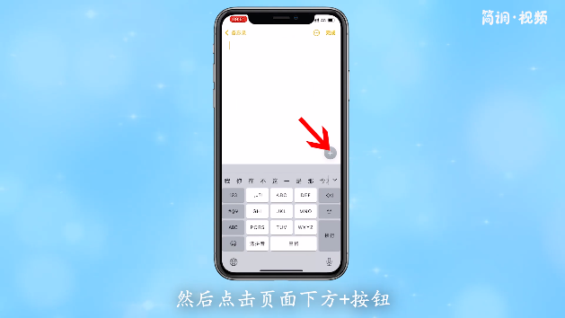 1.打开手机上的备忘录,进入备忘录编辑页面,然后点击页面底部的按钮;