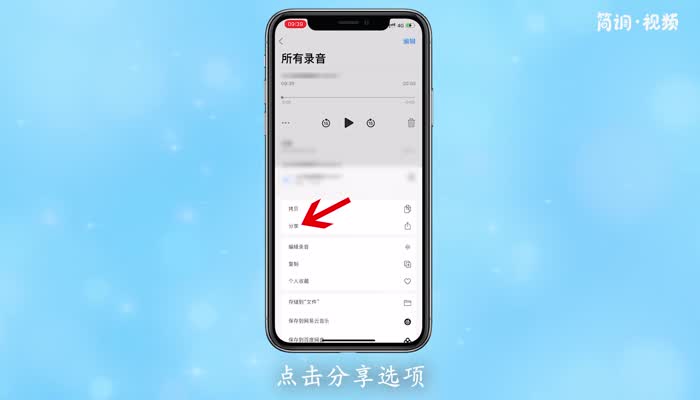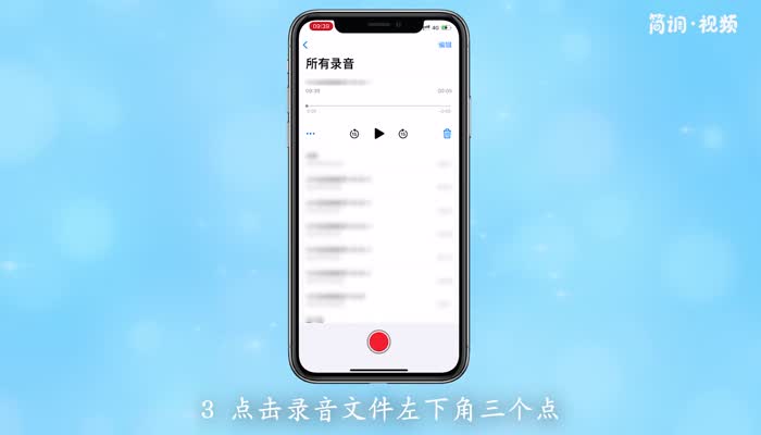 4.点击录音文件左下角的三个点,操作当前录音。以分享录音为例,点击“分享”选项;