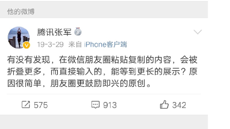这样发的朋友圈可以展示更多的文字内容。但是如果你复制粘贴的内容太长,就无法完整显示。毕竟这是一个“晒”的场合,不适合在这里长篇大论。所以太长的内容会被折叠,这是微信朋友圈本身的属性限制的。