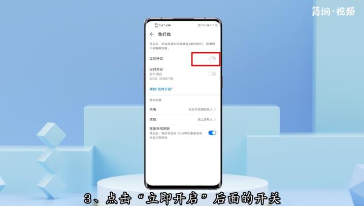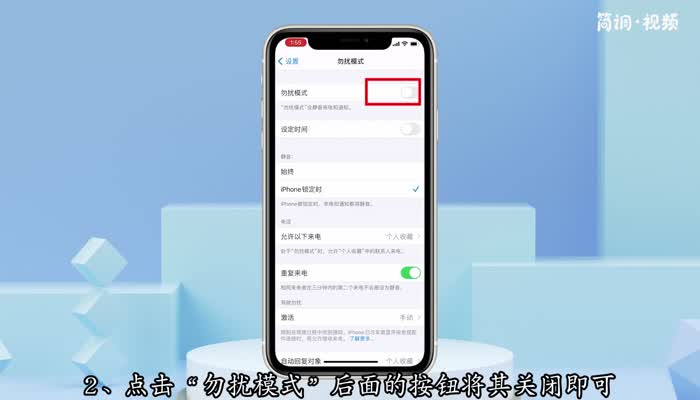 2.点按“请勿打扰模式”后面的按钮以关闭它。