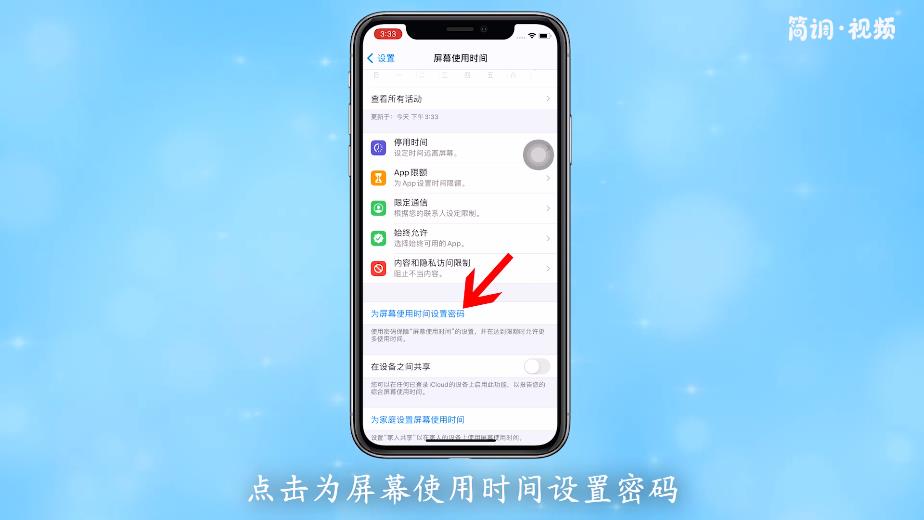 4.返回屏幕使用时间页面,点击“设置屏幕使用时间的密码”并输入密码。