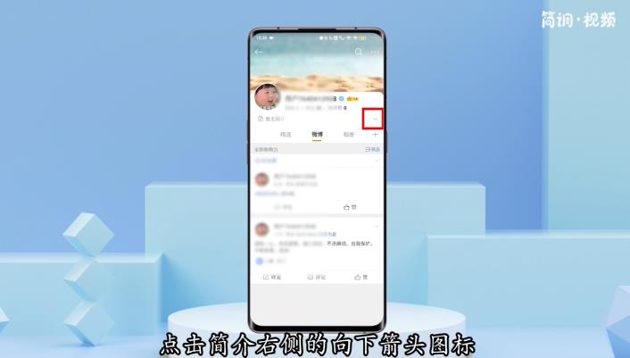 2.进入微博个人页面后,点击他的头像。页面跳转后,单击个人资料右侧的向下箭头图标。