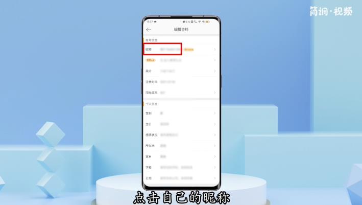 4.进入编辑信息页面后,点击自己的昵称,在修改昵称页面输入要修改的昵称;