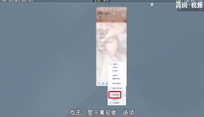 1.登录qq,在联系人页面空白处点击右键,点击“显示黑名单”选项;