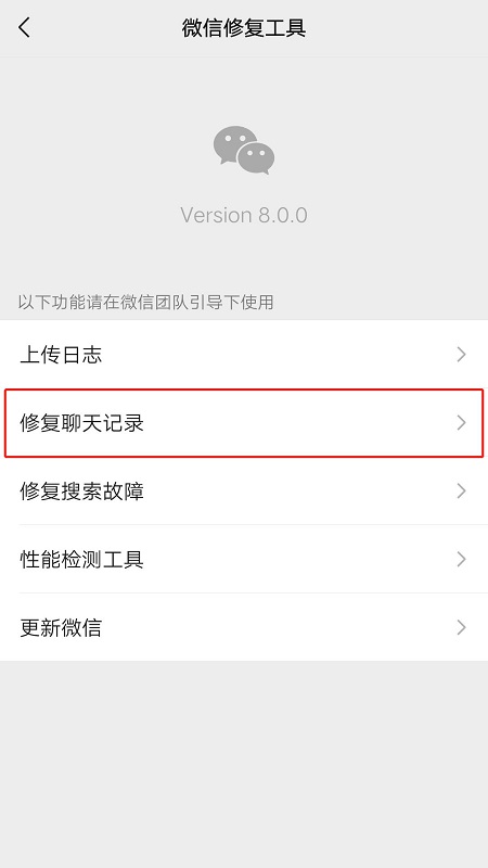 4.选择“修复聊天记录”功能,再次点击“修复聊天记录”。