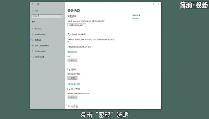 2.在设置界面,点击“账号”选项,然后点击左侧的“登录选项”,进入登录选项设置界面;