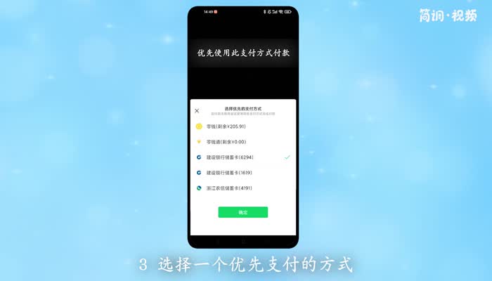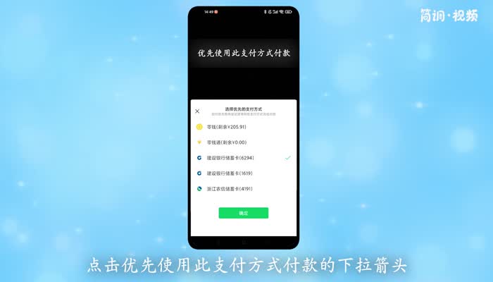 3.选择优先支付方式,单击“检查”,然后单击“确定”。付款时,会用这种方式付款。