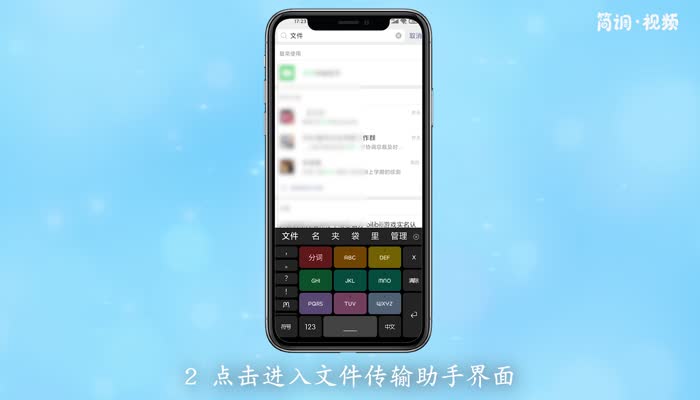 1.在电脑和手机上同步登录微信,打开手机微信,在搜索框输入“文件传输助手”,点击搜索;