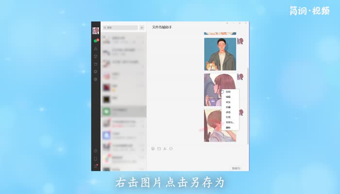 4.打开电脑微信,右键图片点击另存为,选择路径点击保存,保存到电脑上。
