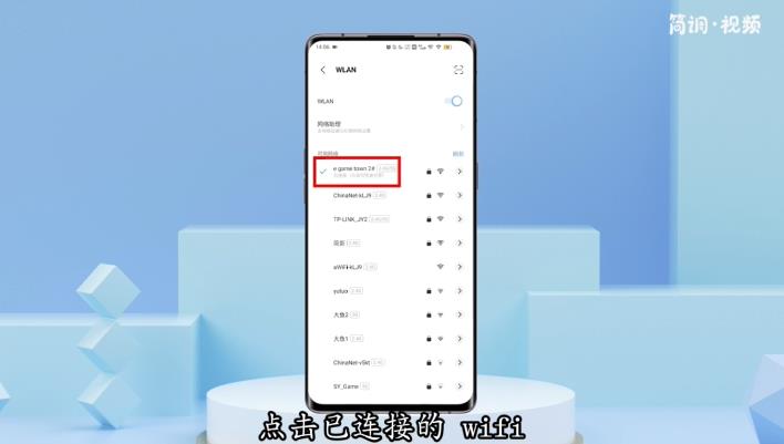2.进入WLAN页面后,点击连接的wifi,进入wifi页面;