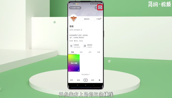 1.打开Tik Tok,切换到“我”界面,点击右上角的三条水平线;