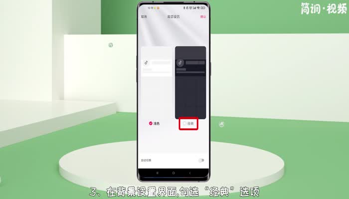要将Tik Tok设置为黑色模式,只需在设置背景设置界面中将模式设置为“经典”即可。具体操作步骤如下: