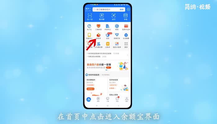 1.打开手机支付宝,点击首页,进入“宝月”界面;