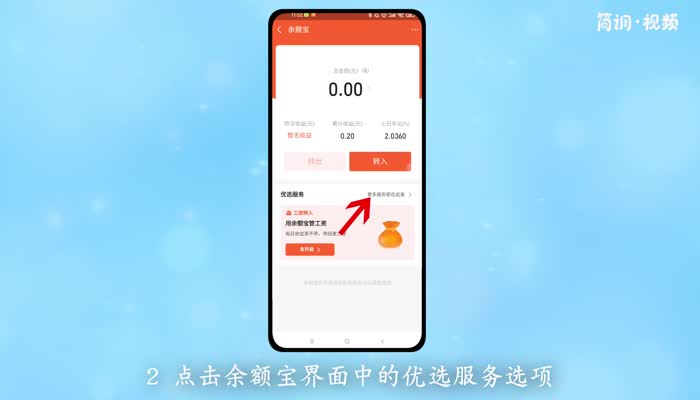 2.在余额宝界面点击“首选服务”选项,然后在资金管理栏点击进入“余额自动转入”界面;