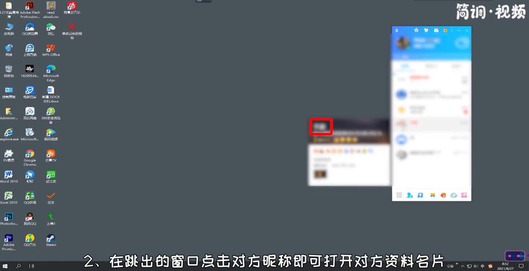 2.在弹出的窗口中点击对方的昵称,打开对方的信息名片。