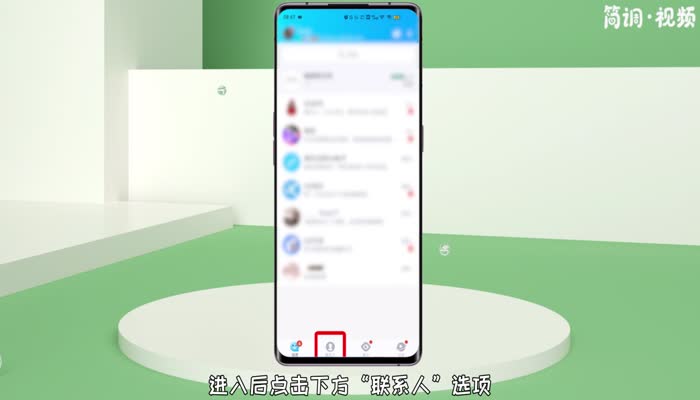 1.打开手机上的“QQ”,点击下方的“联系人”选项,进入联系人页面;