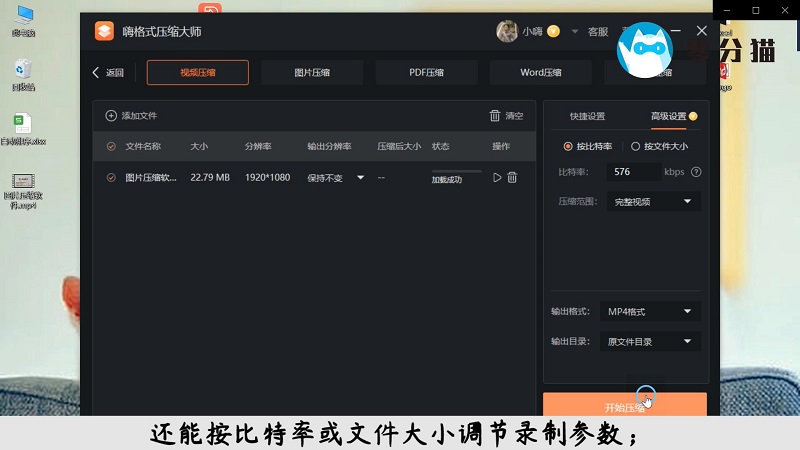 查看压缩视频后,还可以在软件界面看到压缩后的音量。