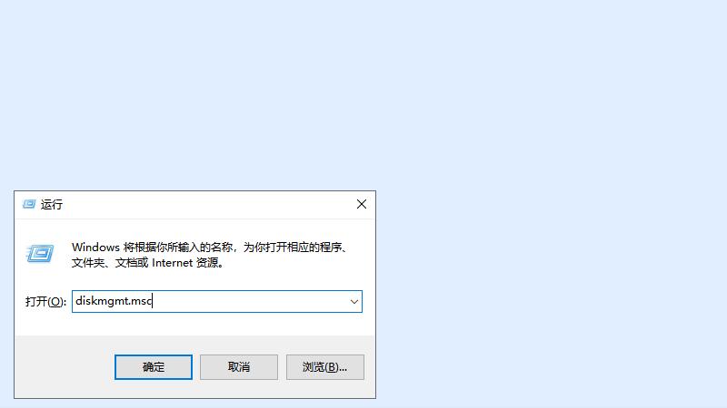 方法二:同时按下键盘上的“Win R”键,在运行窗口中输入“diskmgmt.msc”,点击“确定”打开磁盘管理。