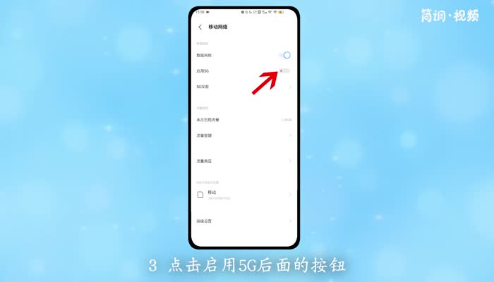 3.点击“启用5G”后面的按钮,开启。