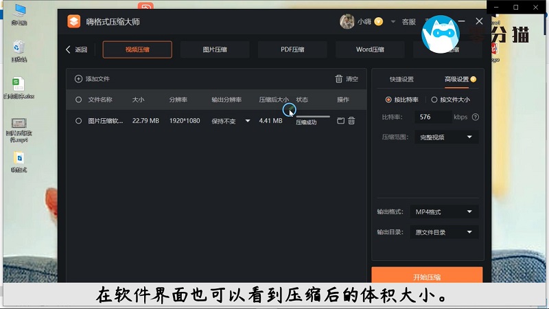 查看压缩视频后,还可以在软件界面看到压缩后的音量。