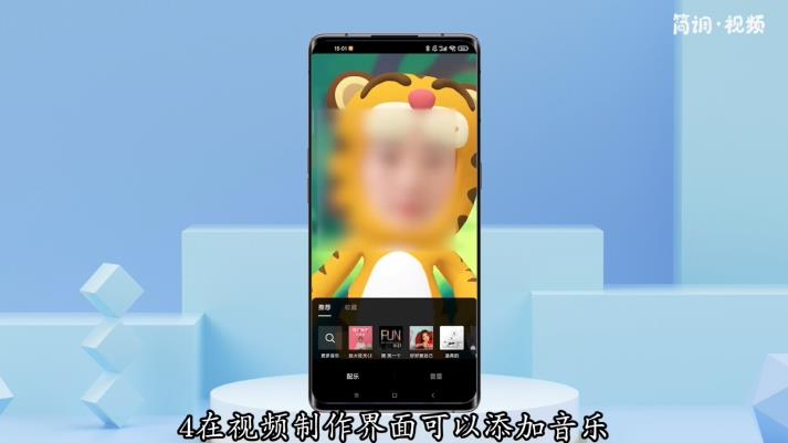 4.在视频制作界面,可以添加音乐、文字、特效等。设置完成后,点击“下一步”进入视频发布界面;