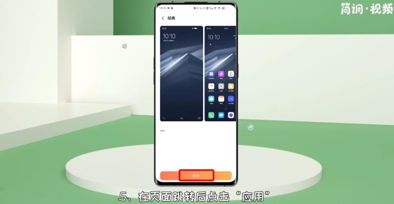 5.页面跳转后点击“应用”,应用完成后,手机桌面将成为经典桌面。