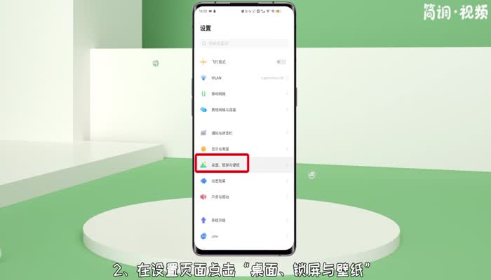 2.在设置页面点击“桌面、锁屏、壁纸”;