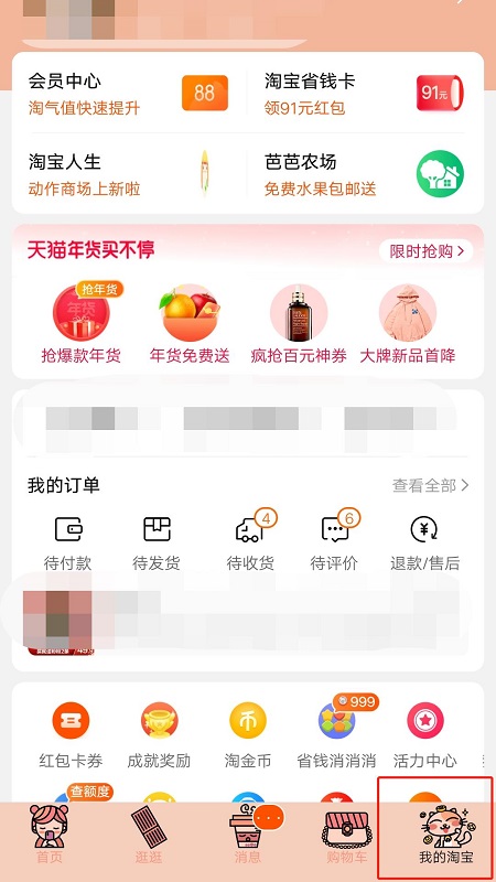 以手机淘宝9.18.0为例。付款前请参考以下步骤打开淘宝: