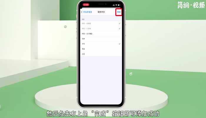 3.在新页面中,点击“添加新键盘”选项,然后勾选键盘语言,以简体中文为例;