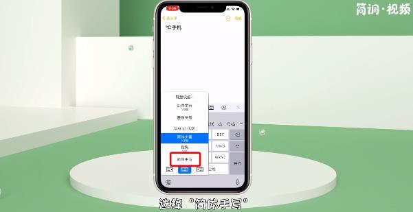 5.打开备忘录,点击右下角的网络图标,选择“简体手写”即可成功切换输入法进行输入。