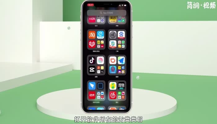 温馨提示:如果无法确认软件被锁定在分类类别,可以进入App资源库页面,点击上方的搜索栏搜索隐藏应用,然后长按移至桌面。