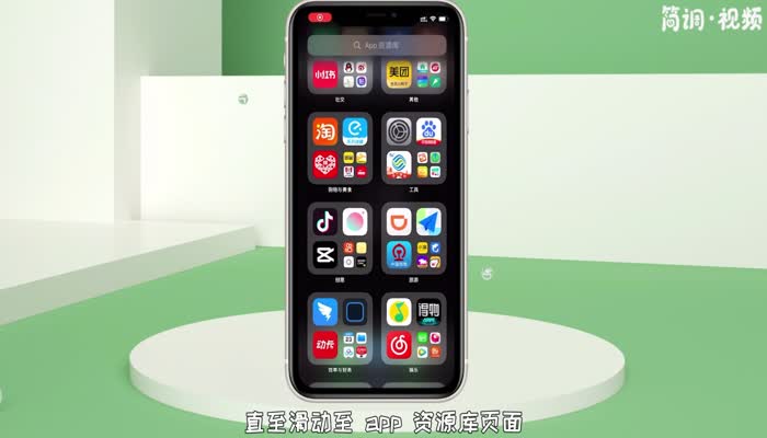 1.向左滑动手机屏幕,直到滑动到App资源库页面;