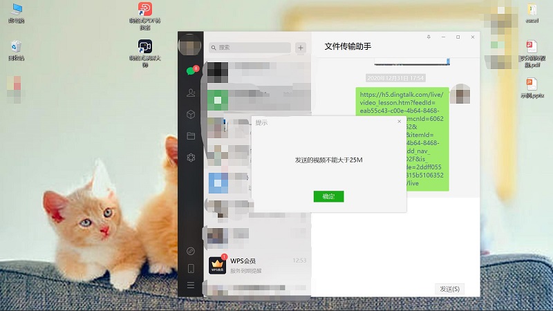 微信最多可以传输25M的视频,但是使用微信的收藏功能可以突破这个限制,发送25M以上100M以下的视频。移动端和PC端同时适用。
