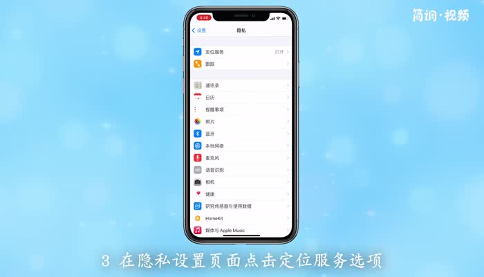 3.在隐私设置页面点击“定位服务”选项,进入定位服务页面;
