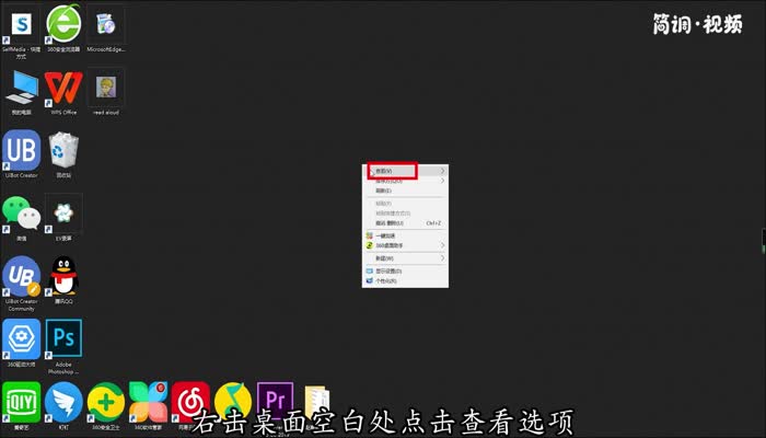 1.打开电脑,右击桌面空白处,点击“查看”选项;