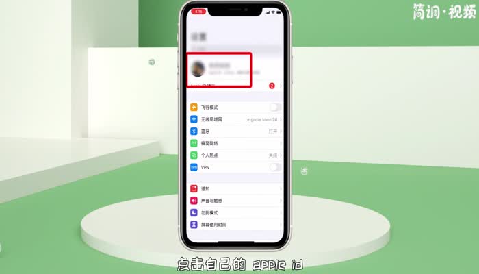 2.进入设置界面后,点击你的Apple ID进入个人中心界面;
