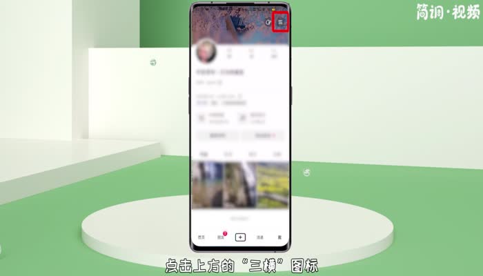 2.进入Tik Tok个人页面后,点击顶部的“三个地平线”图标,在弹出的选项中点击“设置”;