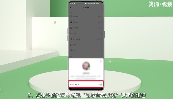 5.单击弹出窗口中“显示活动状态”后面的按钮将其关闭。