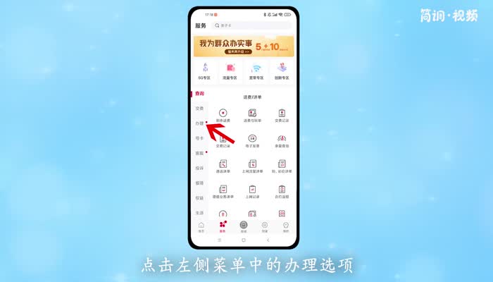 2.在服务界面,点击左侧菜单的“办理”选项,在办理界面找到“销户”,点击进入;