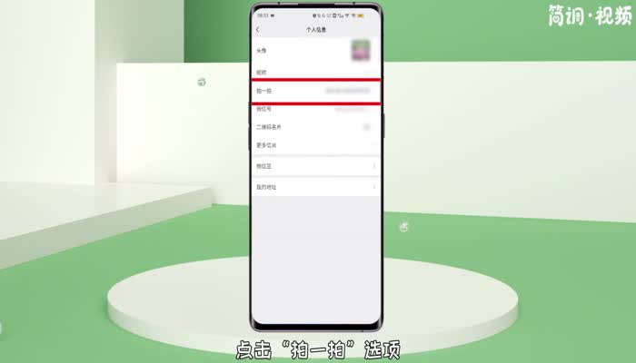 3.在个人信息页面,点击“拍一拍”选项,进入拍一拍设置页面;
