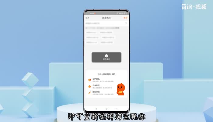 4.点击原昵称输入框,重新编辑淘宝昵称。根据提示编辑后,点击右上角“保存”即可成功修改淘宝名。