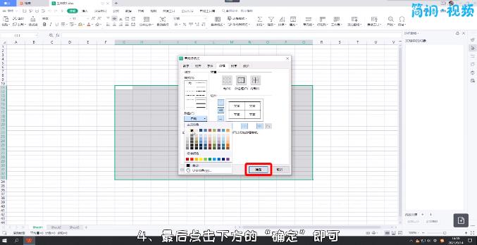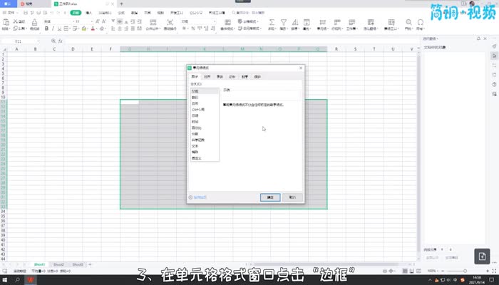 3.在单元格格式窗口中点击“边框”,选择边框、样式、颜色等。待定;
