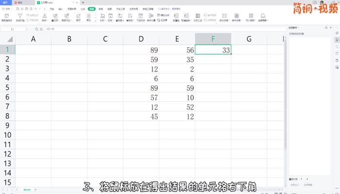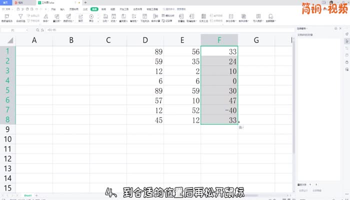 4.到达适当位置后松开鼠标,就可以自动计算出后面的答案,从而达到批量减法的效果。