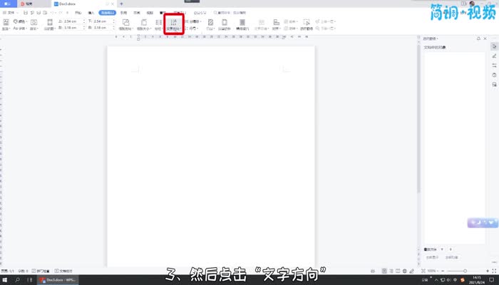 3.然后点击“文字方向”,从下拉菜单中选择一种垂直类型,这样布局就变成垂直了。