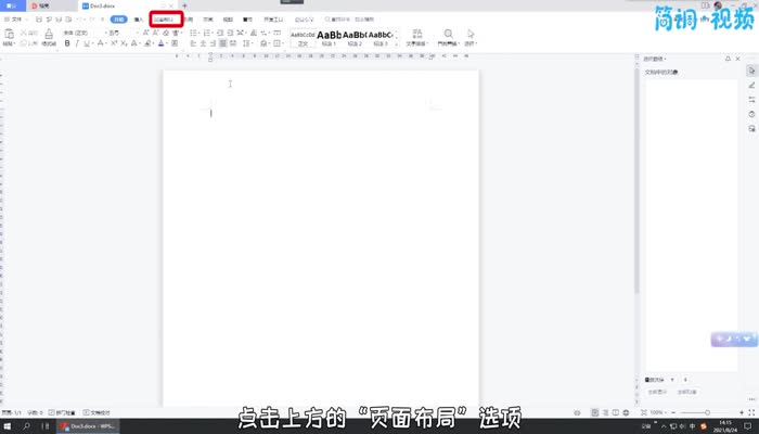 1.进入文档后,点击顶部的“页面布局”选项;