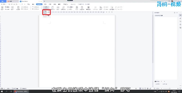 2.然后点击“纸张方向”选项,从弹出的选项中选择“纵向”。