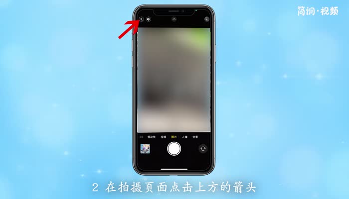 2.点击拍摄页面顶部的“箭头”,在弹出的选项栏中点击闪电图标;