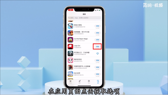 4.进入APP store,选择要下载的应用,点击应用页面的“获取”选项,然后按照弹出的窗口提示“按两下即可安装”。