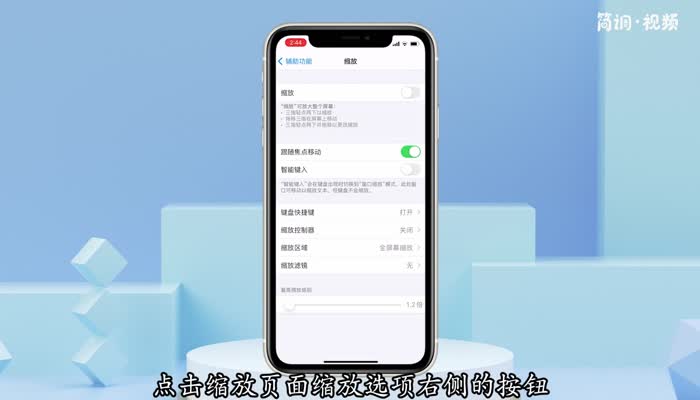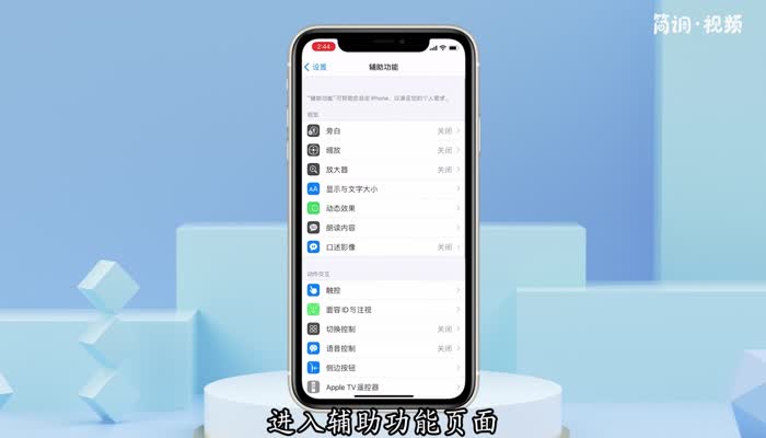 苹果手机底部出现一个白色方框,表示苹果手机的变焦功能开启,在辅助功能页面可以关闭。具体操作步骤如下: